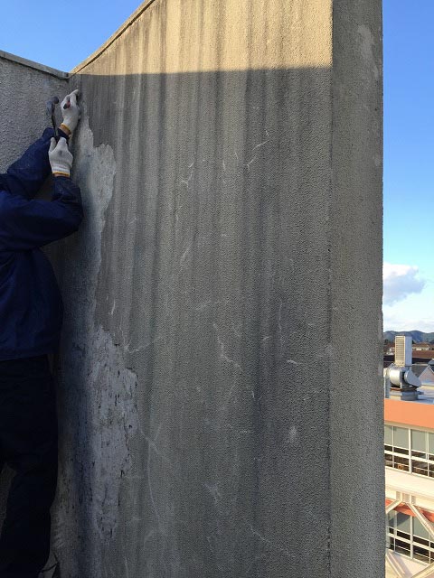 屋上は過酷な環境ですので劣化の進行が早く進みます。防水塗装は早めの定期的な塗り替えが必要となります。
